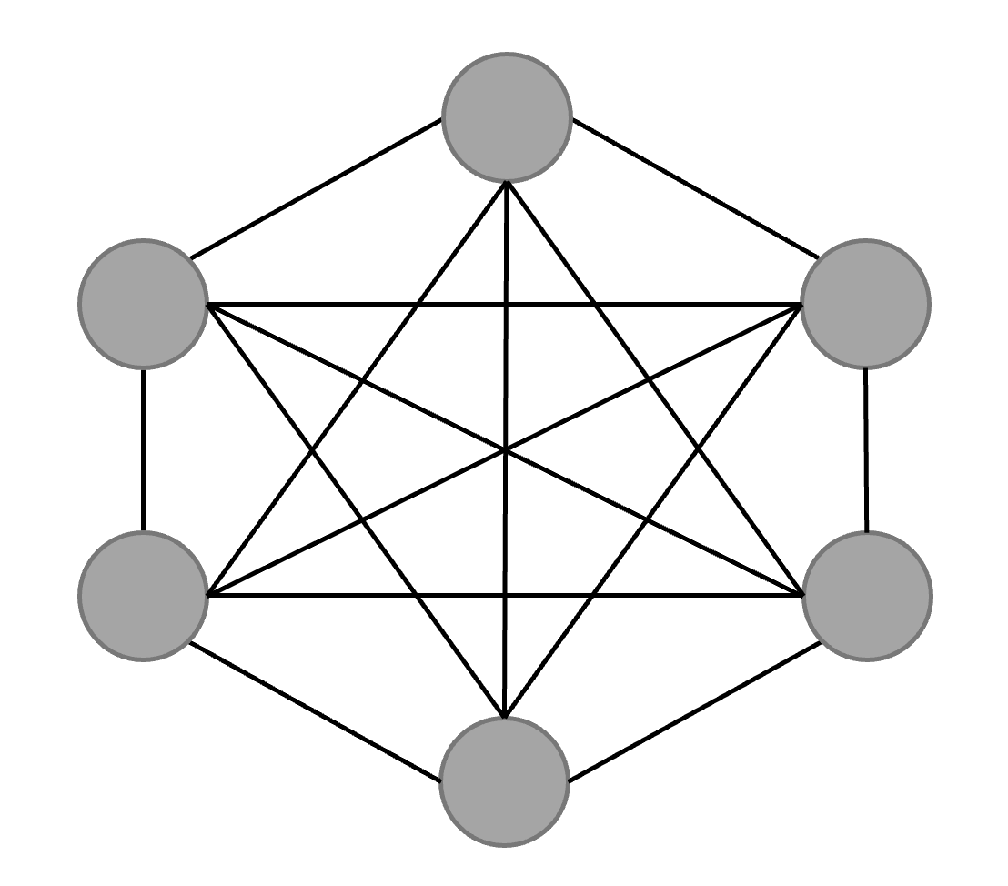 메시(mesh) 토폴로지는 망형 토폴로지라고도 하며 그물망처럼 연결되어 있는 구조다.