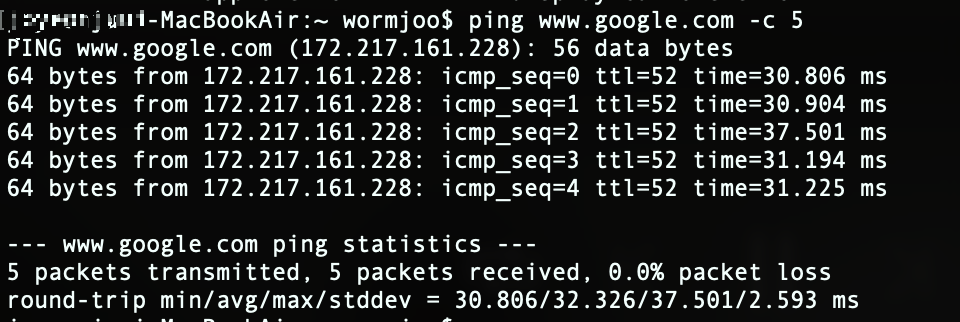 ping [IP 주소 또는 도메인 주소]로 실행한다.