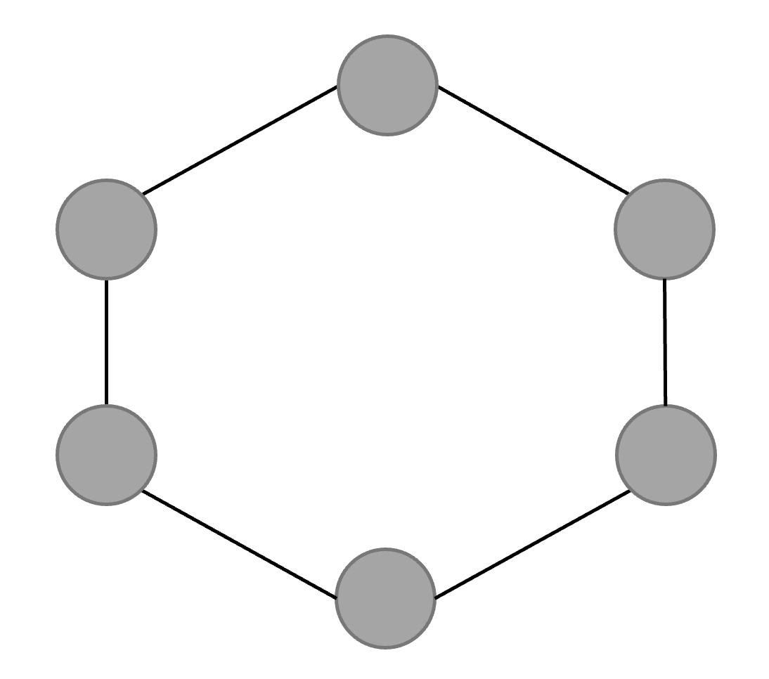 링형(ring) 토폴로지는 각각의 노드가 양 옆의 두 노드와 연결하여 전체적으로 고리처럼 하나의 연속된 길을 통해 통신을 하는 망 구성 방식이다.